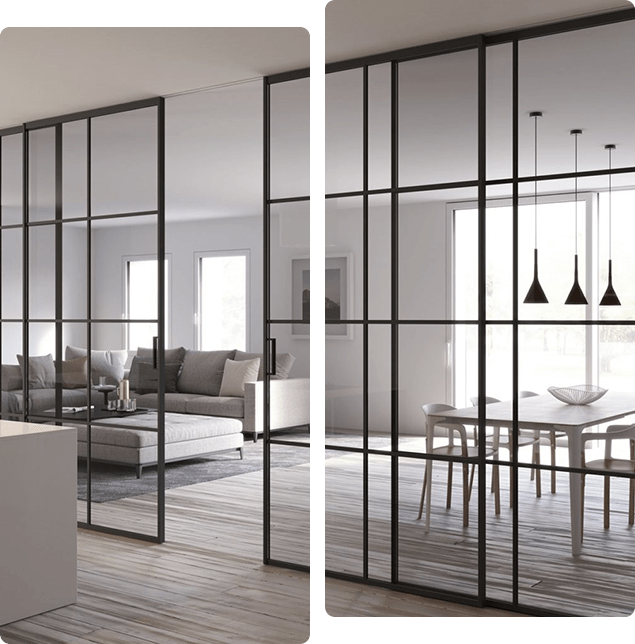 Ce modèle de verrière est conçu pour s’utiliser en intérieur afin de faciliter la circulation d’une pièce à une autre. Il joue à la fois le rôle de cloison et celui de porte. Elle peut s’installer entre un séjour et une cuisine ou entre une chambre et un dressing. D’autres modèles servent à séparer un salon d’un bureau.