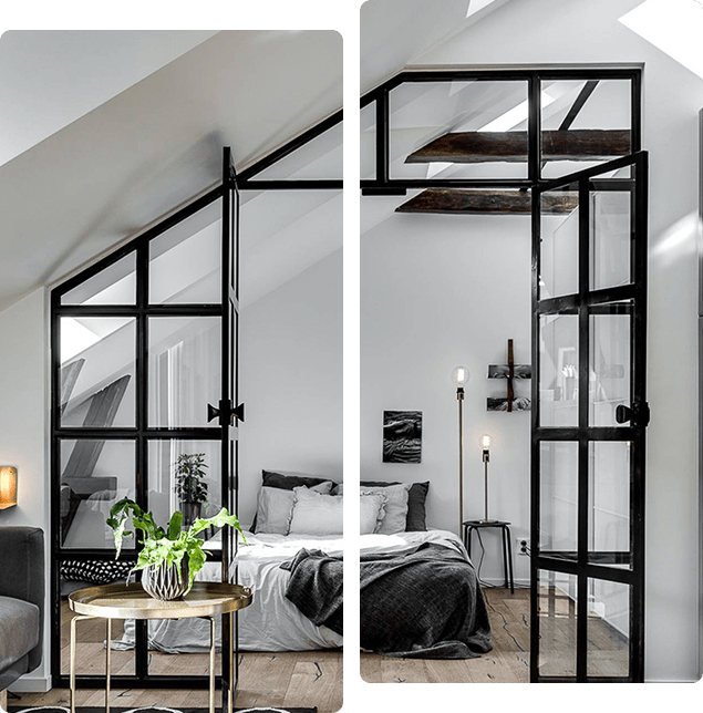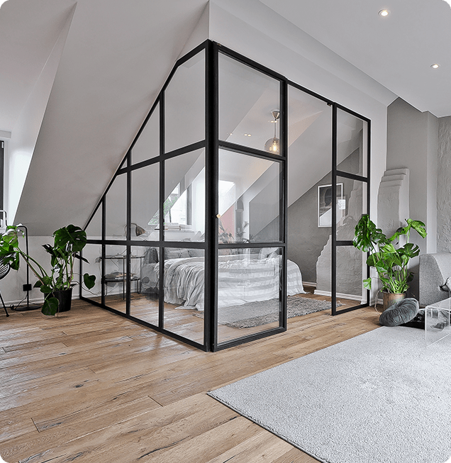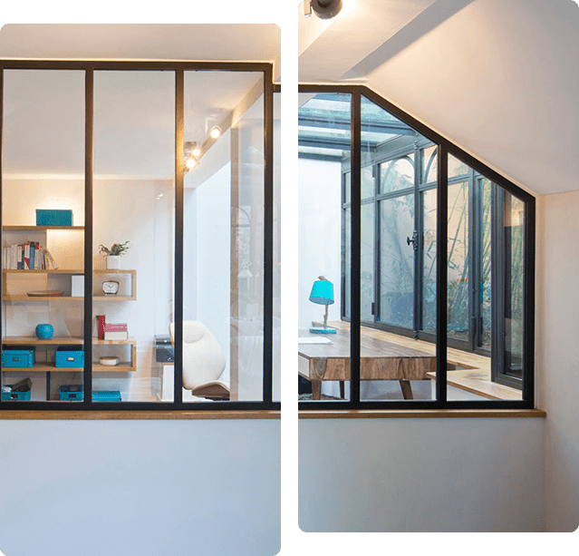 La verrière triangle fait partie de ces formes de verrières d’intérieur originales, qui offrent une belle esthétique à votre habitation. Elle est très présente sous des pentes de toit ou entre des poutres, pour des combles aménagés, le dernier étage d'une maison ou un appartement en duplex.